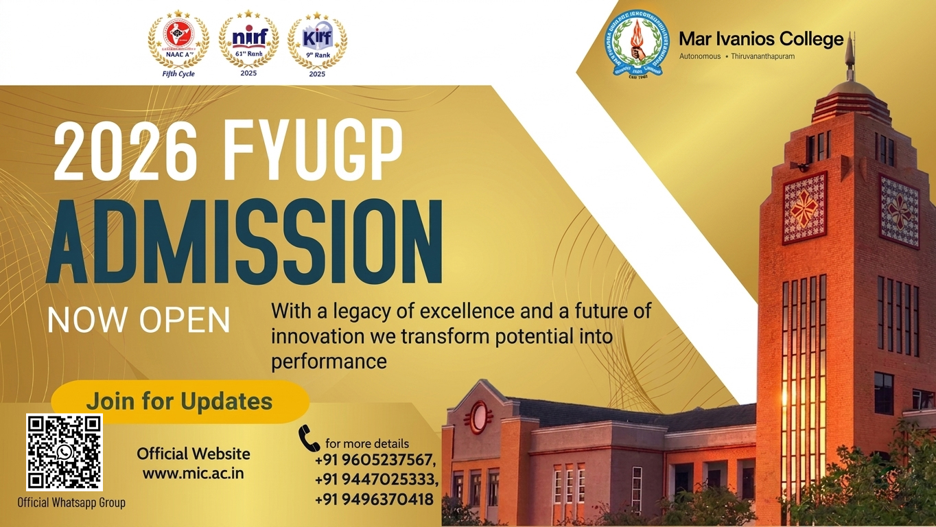 Mar Ivanios College was established in 1949 and pursues excellence upholding the far-sighted vision of our revered Founder, Servant of God Archbishop Mar Ivanios. The College is the first Institution in the University of Kerala to receive accreditation from the National Assessment and Accreditation Council (NAAC) in 1999. The College was also the first to be re-assessed and re-accredited with ‘A’ Grade by NAAC in 2004. In 2011 the College was re-assessed by the NAAC Peer team as part of the Third Cycle of re-accreditation process. Mar Ivanios College became the first private college affiliated to the University of Kerala to receive the status of CPE from the UGC. Upon the recommendations of the University Grants Commission (UGC). The College has been conferred with Autonomy status by the University of Kerala with effect from 13th June 2014.