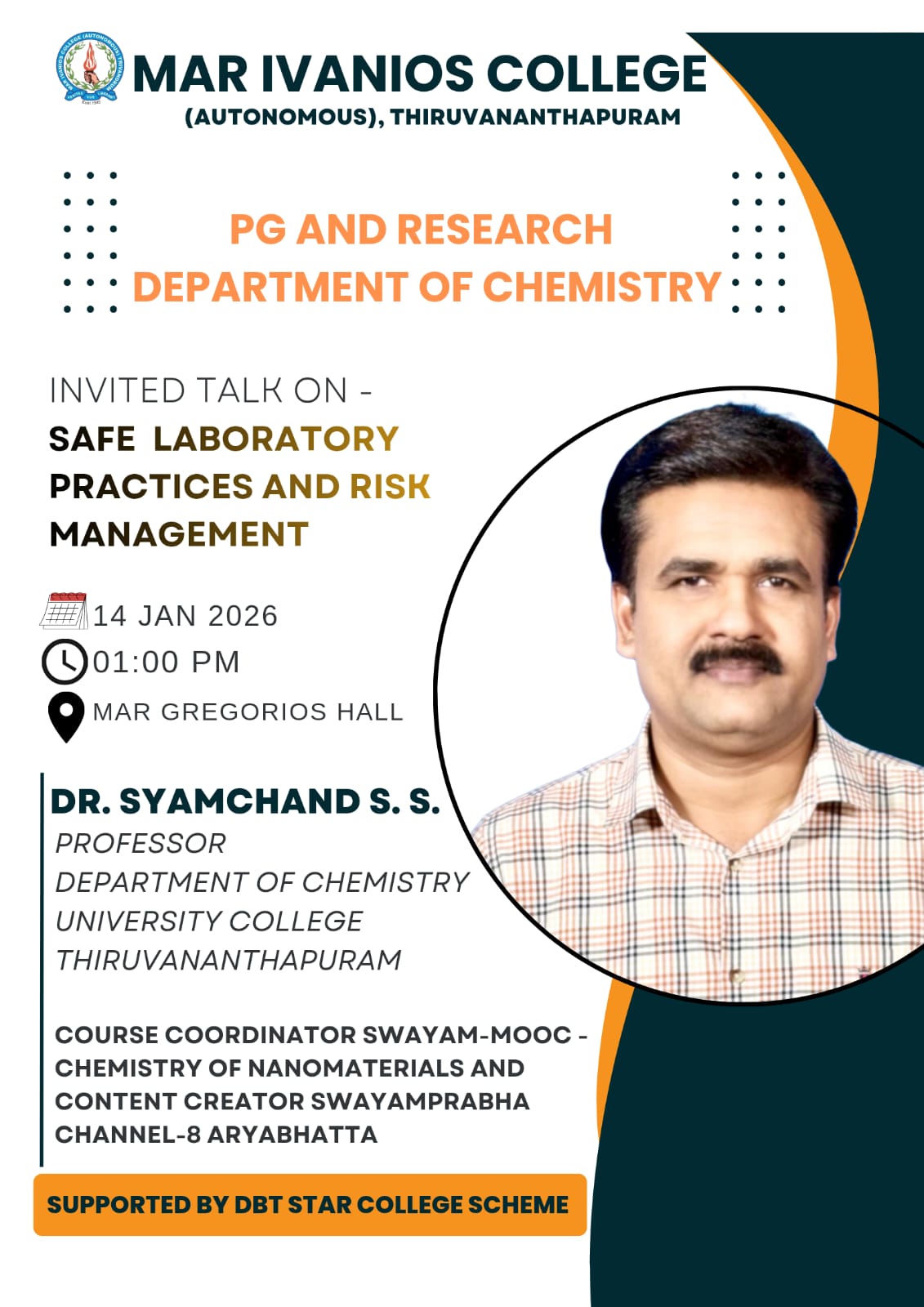 jointly organized by the Department of Chemistry, Mar Ivanios College & Chemical Research Society of India (CRSI)- Local Chapter of the Region (Trivandrum-Cochin-Calicut) is scheduled on Saturday, 19th November 2022.