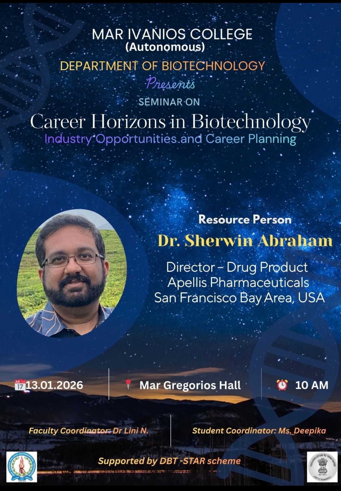 The Erudite Lecture organized by the PG & Research Department of Zoology Mar Ivanios College (Autonomous), in association with the Kerala State Higher Education Council, 5th December 2022 at 10:00 am in Mar Gregorios Hall.