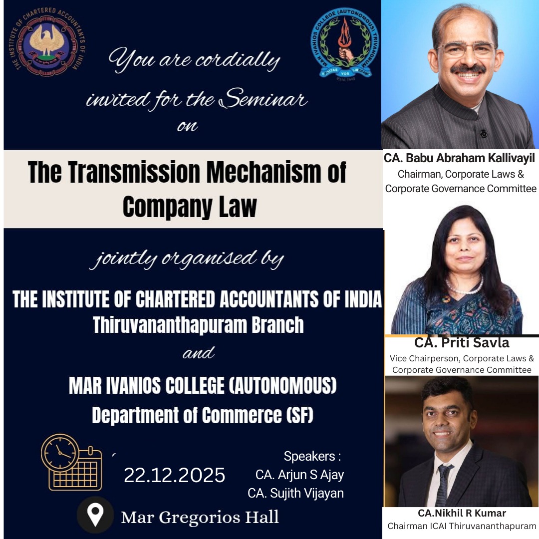 Mar Ivanios College was established in 1949 and pursues excellence upholding the far-sighted vision of our revered Founder, Servant of God Archbishop Mar Ivanios. The College is the first Institution in the University of Kerala to receive accreditation from the National Assessment and Accreditation Council (NAAC) in 1999. The College was also the first to be re-assessed and re-accredited with ‘A’ Grade by NAAC in 2004. In 2011 the College was re-assessed by the NAAC Peer team as part of the Third Cycle of re-accreditation process. Mar Ivanios College became the first private college affiliated to the University of Kerala to receive the status of CPE from the UGC. Upon the recommendations of the University Grants Commission (UGC). The College has been conferred with Autonomy status by the University of Kerala with effect from 13th June 2014.